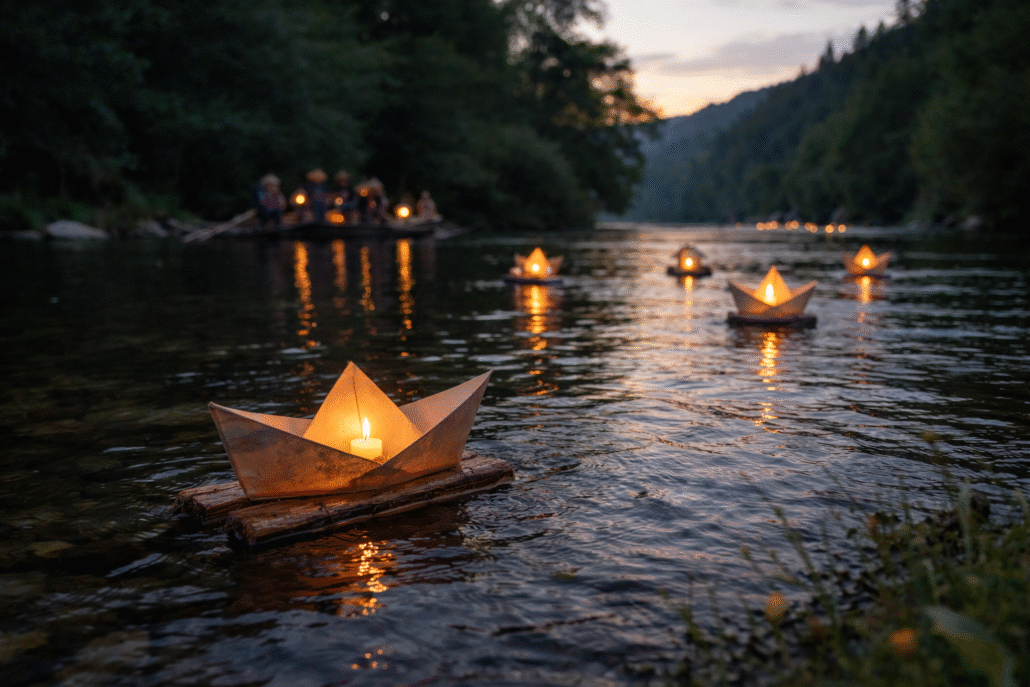 Vožnjo smo zaključili v sproščenem vzdušju s flosarsko gavdo, kjer so se prepletli smeh, glasba in občutek povezanosti.